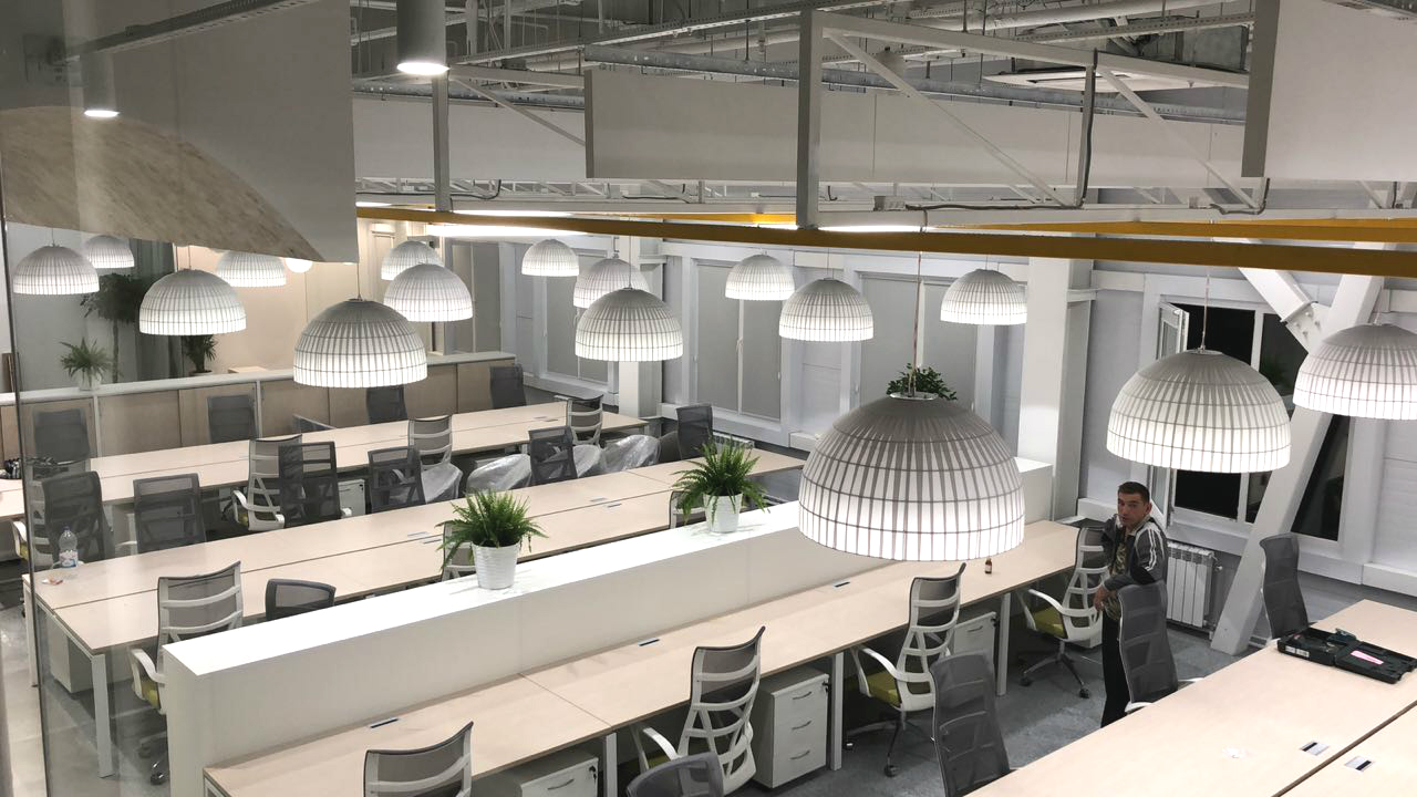 Всё больше современных предприятий стремятся разбавить строгость рабочих будней фирменным и ярким дизайном, а освещение в нем играет далеко не последнюю роль.