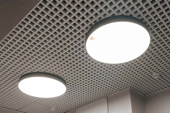 В холле здания, помимо серии D-LINE, установили светильники D-RING. Мощность светильников 60 Вт, IP 40.