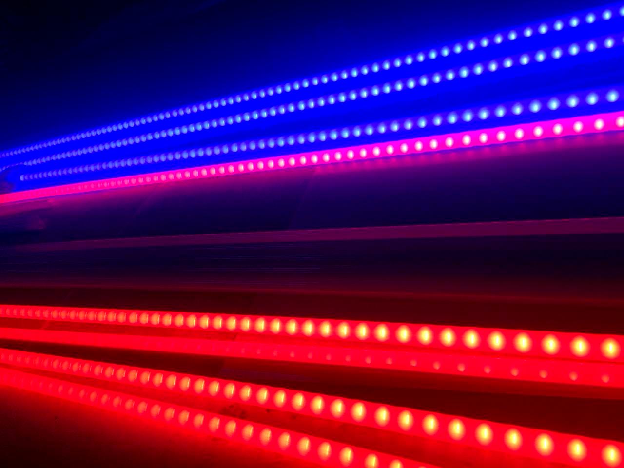 В проекте были использованы "трубки", длиной 1 и 3 метра. Различная длина светильников позволяет создать ровный контур освещения и равномерно осветить всю конструкцию.