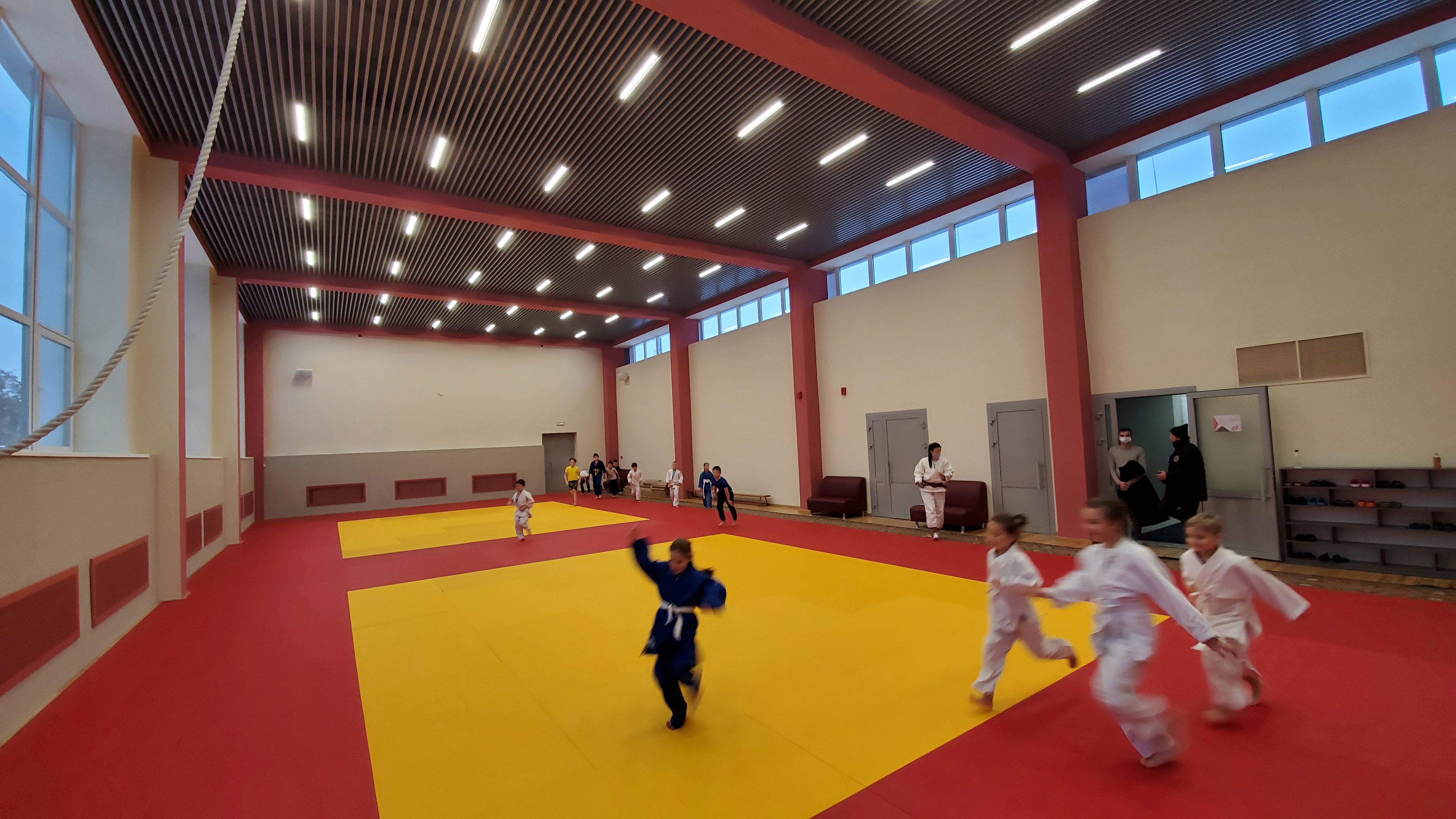 Уникальный дизайн был создан при модернизации освещения на объекте в г. Казань в МАУ «Спортивная школа олимпийского резерва «Тасма». В детско-юношеской спортивной школе культивируются такие вида спорта как легкая атлетика, дзюдо, футбол, корэш, стрельба из лука и др., залы для каждого из них требуют индивидуального подхода при проектировании освещения. После мероприятий по модернизации каждый зал оснащен энергоэффективным световым оборудованием, трековыми прожекторами, светильниками с оригинальным дизайном и учитывающими специфику вида спорта, помимо функционального освещения применено и декоративное освещение. 3D-визаулизация наших специалистов позволила выполнить детальную проработку проекта и спрогнозировать преимущества.