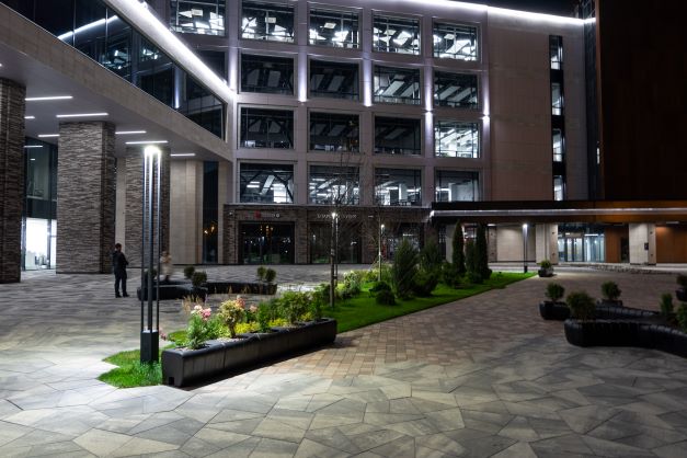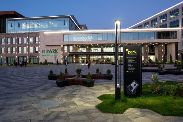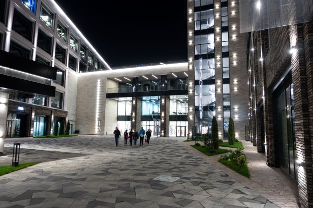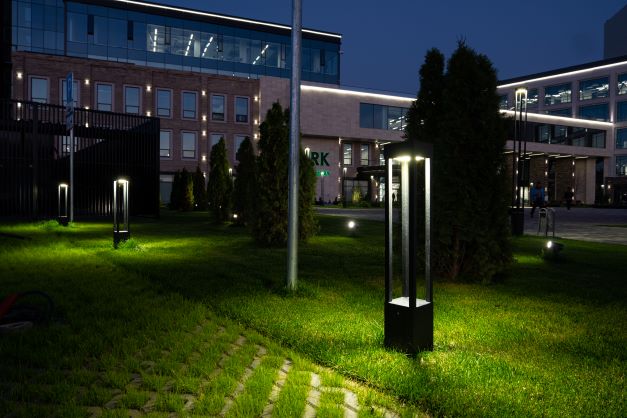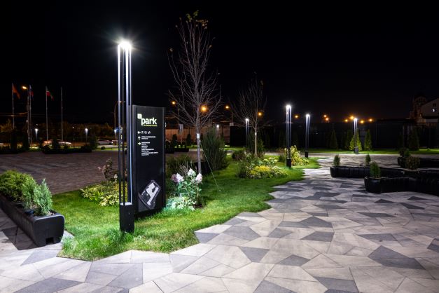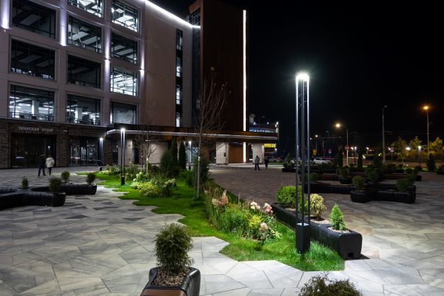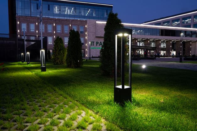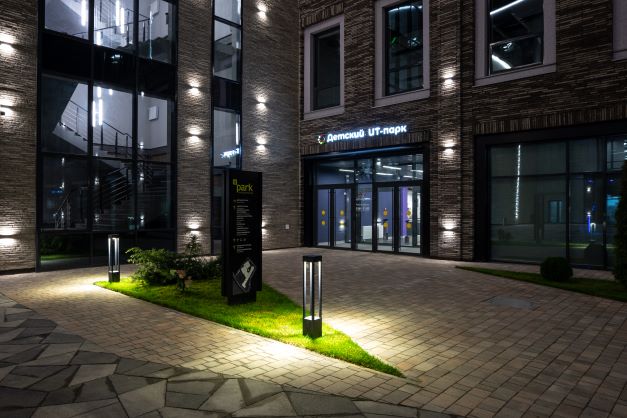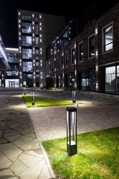 Парковые светильники D-ArchiLine Column D мощностью 50 Вт создают теплую и уютную атмосферу в небольшой парковой зоне перед входом в ИТ-парк. Светильники D-Archiline Grunt подсвечивают молодые деревья и кустарники. Внутренний двор освещают светильники D-ArchiLine Column D мощностью 26 Вт, обладающие высокими антивандальными свойствами. Светильники D-Park C2/2 расположены вдоль парковки со стороны соседнего торгового центра.