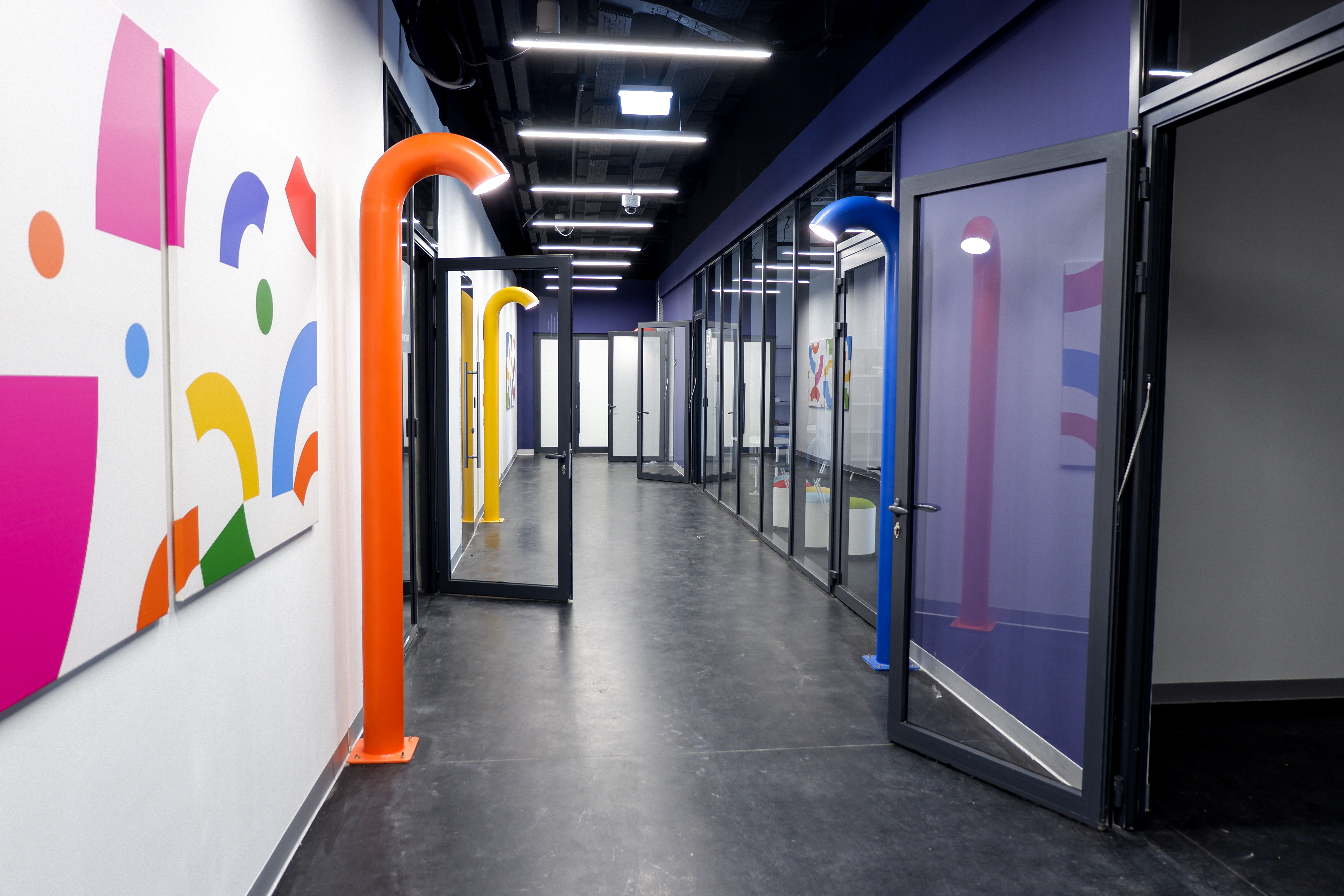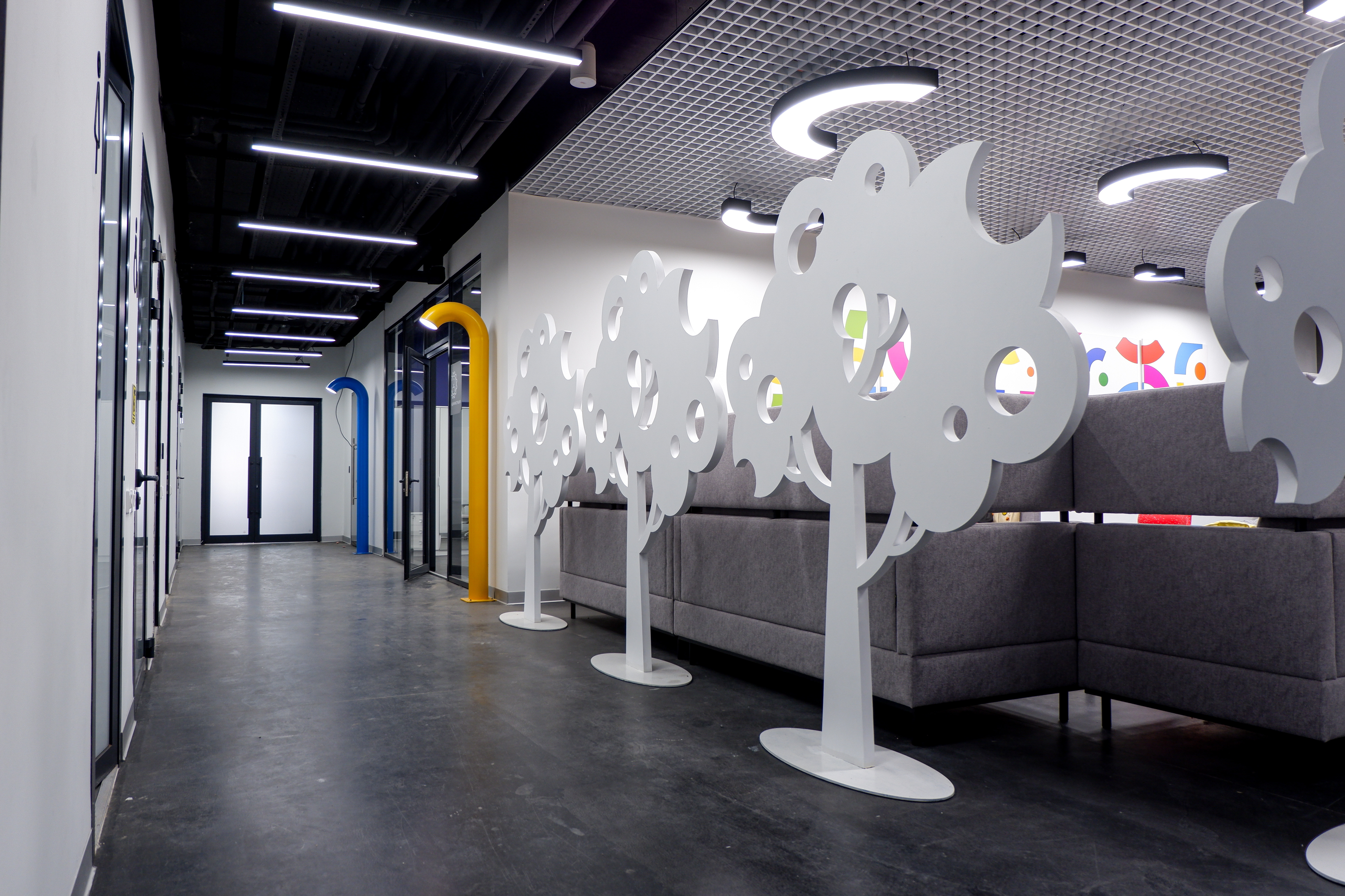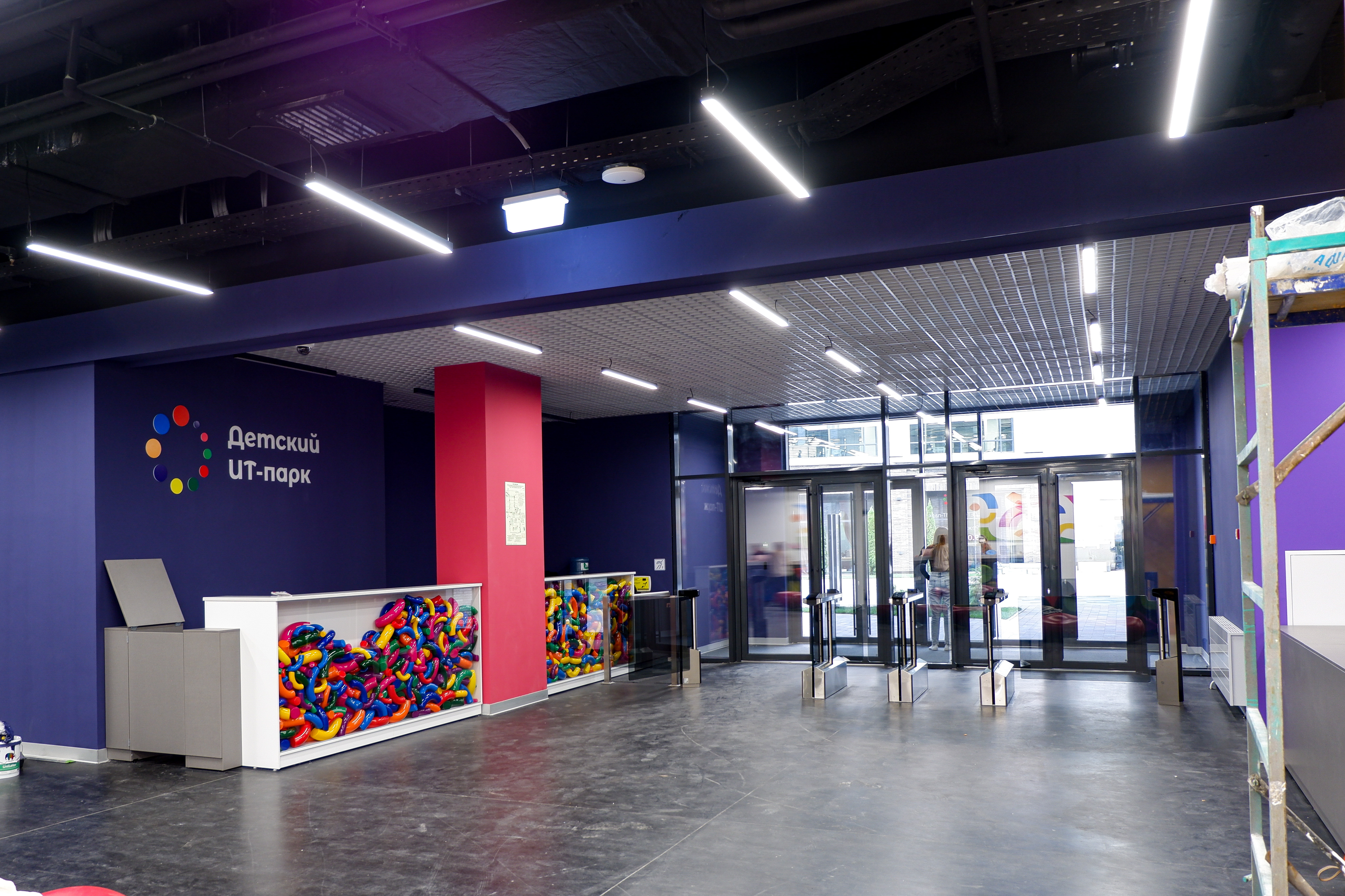 Отдельно стоит упомянуть нестандартные светильники D-ArchiLine Exclusive 7 и D-Ring Moon мощностью 49 и 92 Вт, расположенные в зоне детского ИТ-парка. Необычные расцветка первых и формы обоих этих светильников создают настроение как маленьким, так и взрослым посетителям кластера.