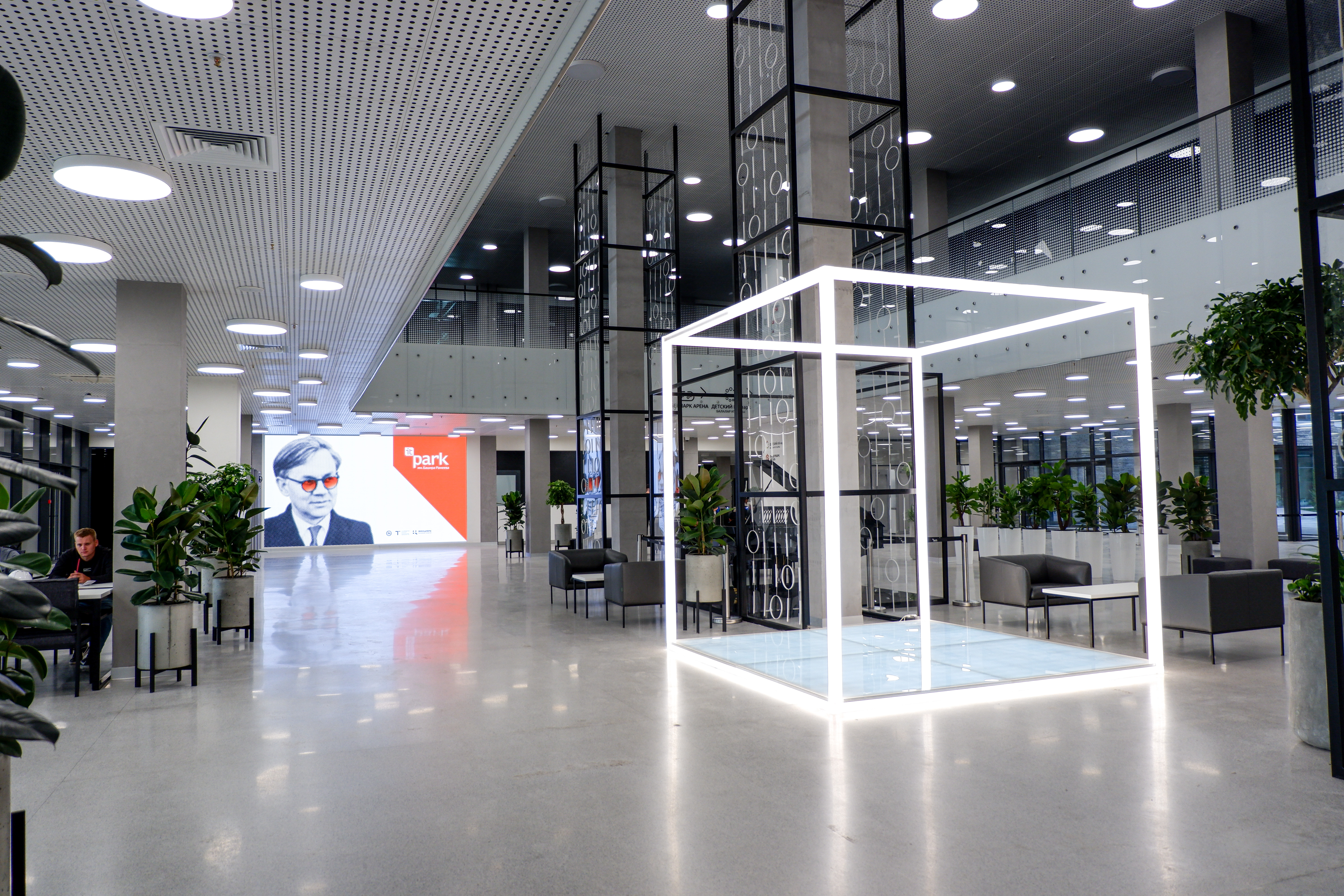 Изюминкой внутренних помещений ИТ-парка является люстра D-ArchiLine Tube 32 SP, состоящая из 52 элементов мощностью 35 Вт, которая находится между лестничными пролетами в блоке В.