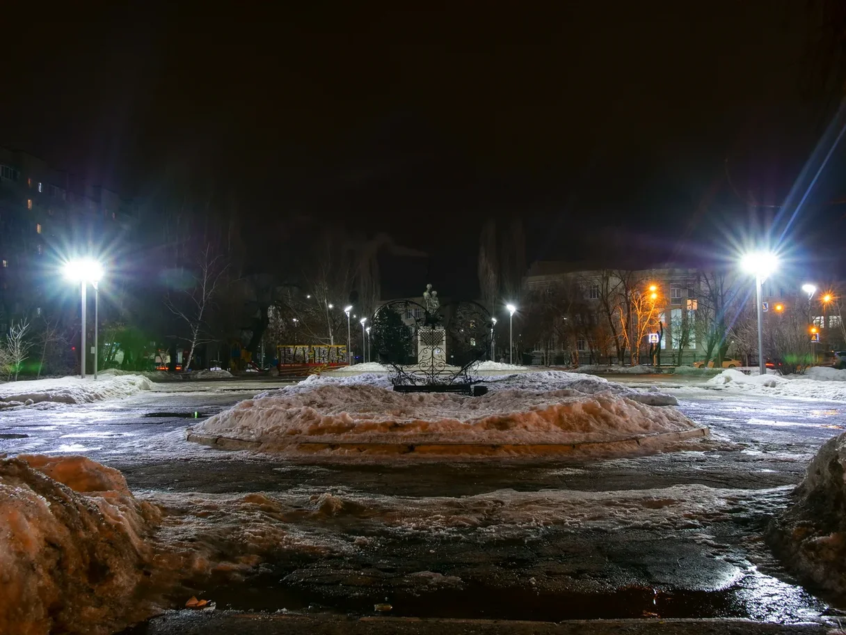 На территории произвели замену светильников типа ДНаТ